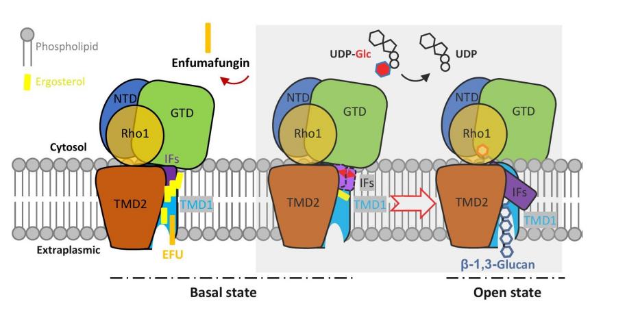 近年来真菌感染相关疾病日益严重,每年感染3亿人左右,导致约160万人死亡,严重威胁公共健康。临床有限的抗真菌药物种类和不断出现的耐药菌株使得新型抗真菌药物的研发迫在眉睫。β-1,3-葡聚糖合成酶负责催化合成真菌细胞壁主要组分β-1,3-葡聚糖,是三萜类与棘白菌素类上市抗真菌药物的共同作用靶点。其中,三萜类药物(Ibrexafungerp,艾瑞芬净)是近二十多年来唯一获FDA批准的新型抗真菌药物,也是首个获批的口服非唑类治疗阴道念珠菌病(VVC)的药物,但三萜类药物发挥功能的具体分子机制尚不清楚。